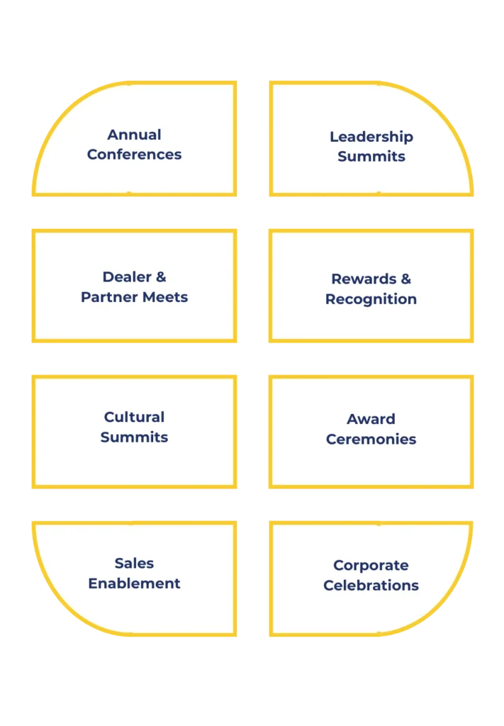 Corporate events today go beyond gatherings—they are platforms for communication, recognition, and strategic engagement. Altspire works closely with brands to design corporate experiences that align with organizational objectives while delivering meaningful engagement for audiences. From leadership summits and dealer meets to large-scale conferences and award ceremonies, our approach combines thoughtful planning, technical precision, and disciplined execution to ensure every event reflects the brand’s intent and impact.